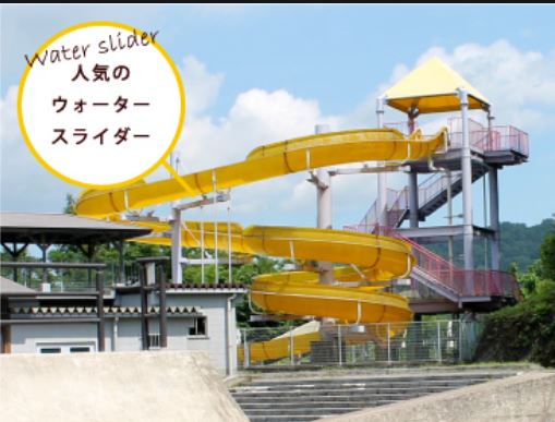迫力満点のウォータスライダーや、幼児滑り台、その他さまざまなアトラクション完備のプール!